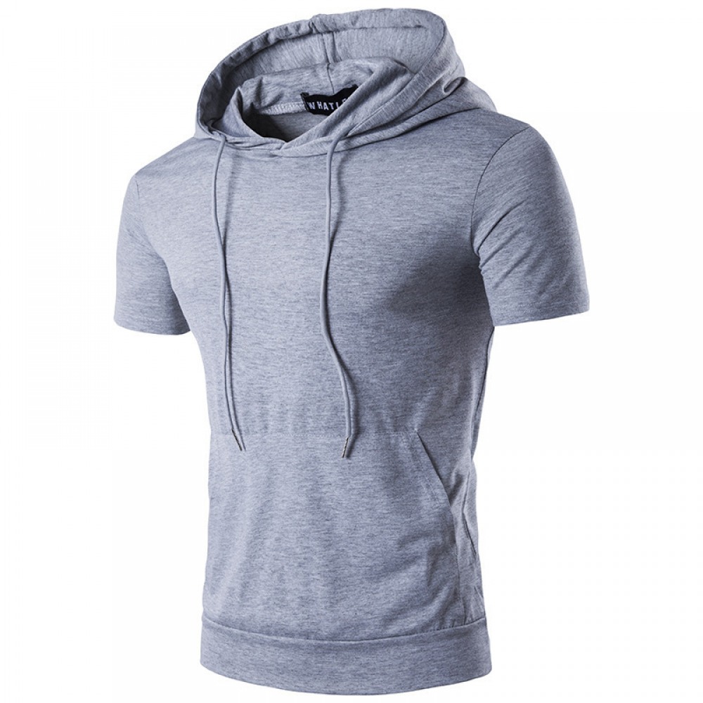Casual Trendy Men's Hooded T-Shirt Mens Summer Solid Color Cotton Short-Sleeved T-Shirts