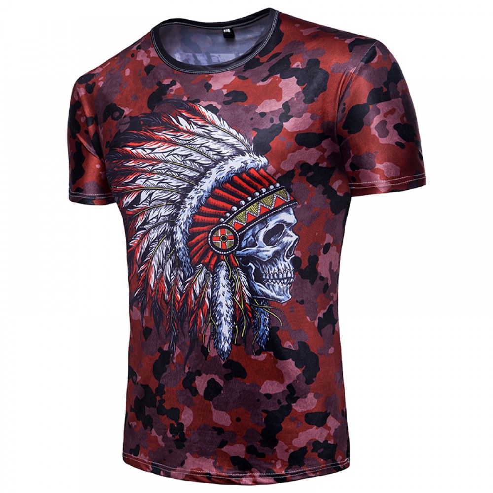 Men's 3Dt Shirt Indian Skull Print Celebrity Style African Short Sleeve T-Shirt