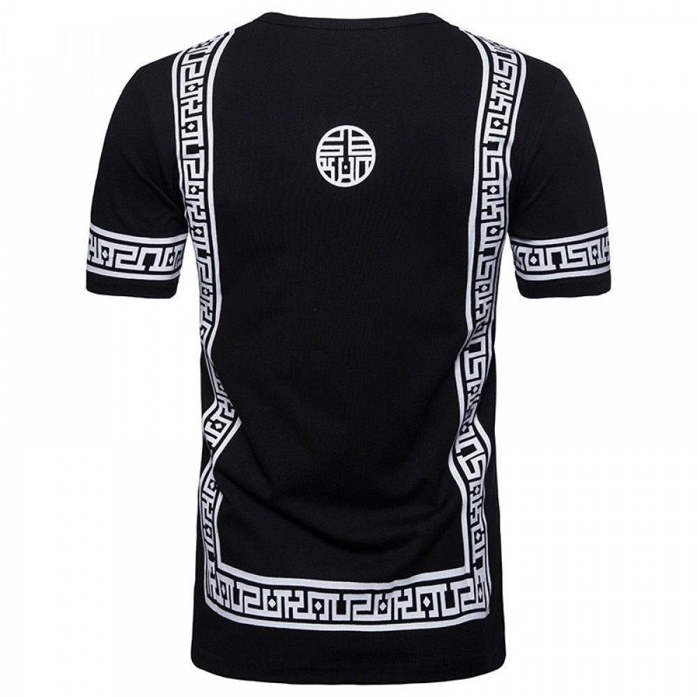 Summer Men's English Jacquard Fashion Hipster Hip-Hop Short-Sleeved T-Shirt