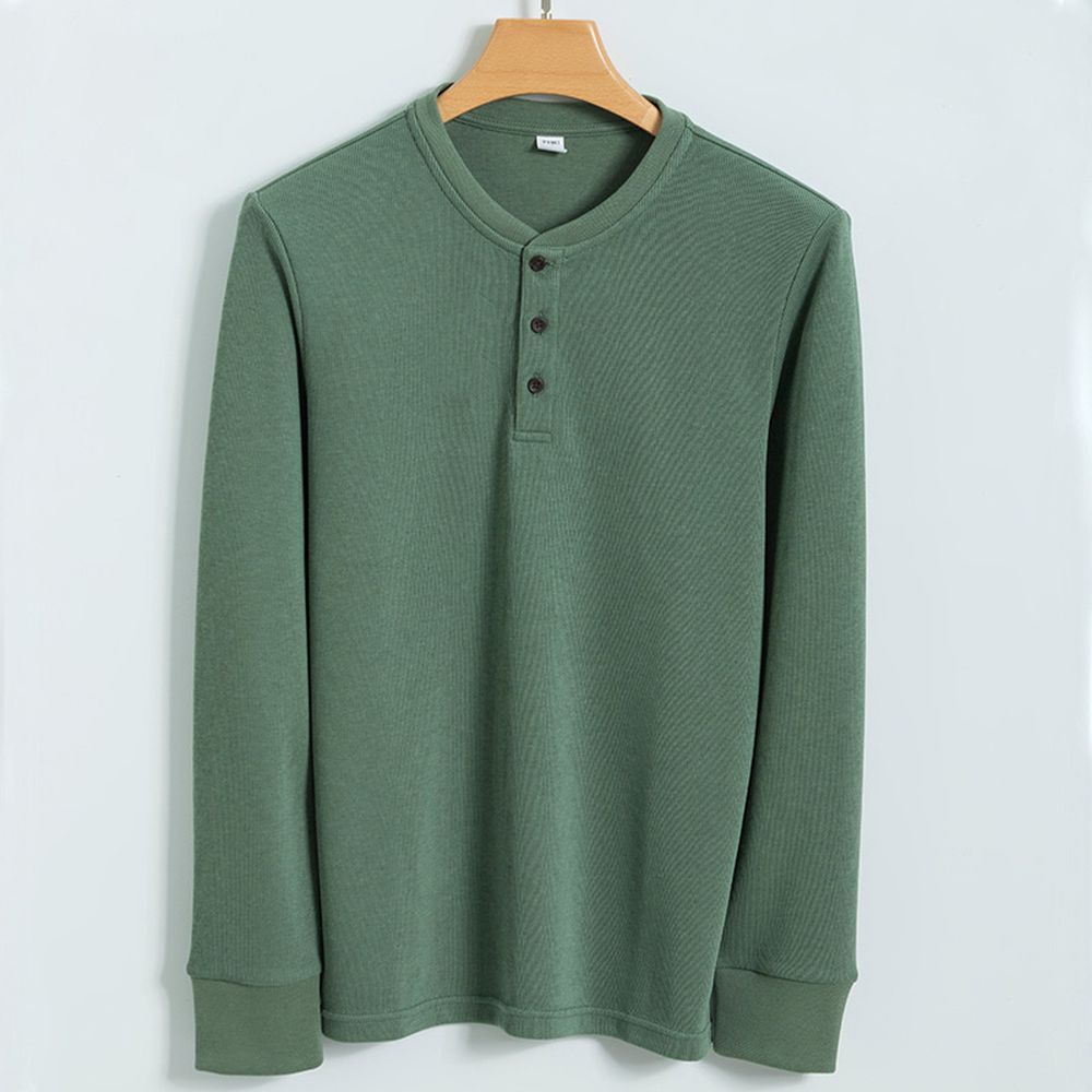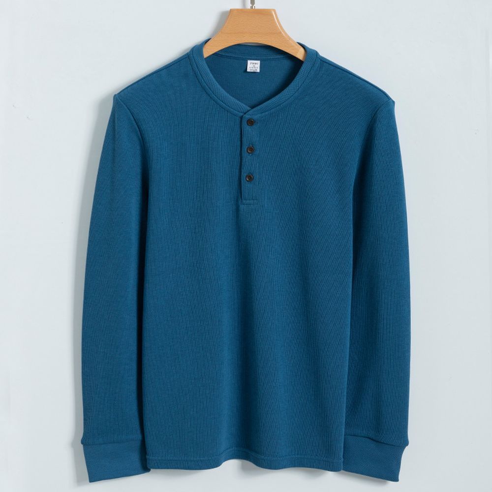 Men's Plus Size Plus Velvet Warm Henley Collar Long-Sleeved T-Shirt Bottoming Shirt