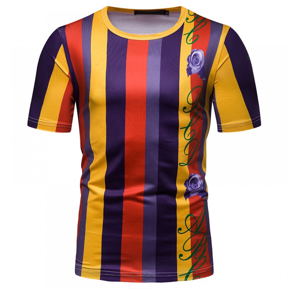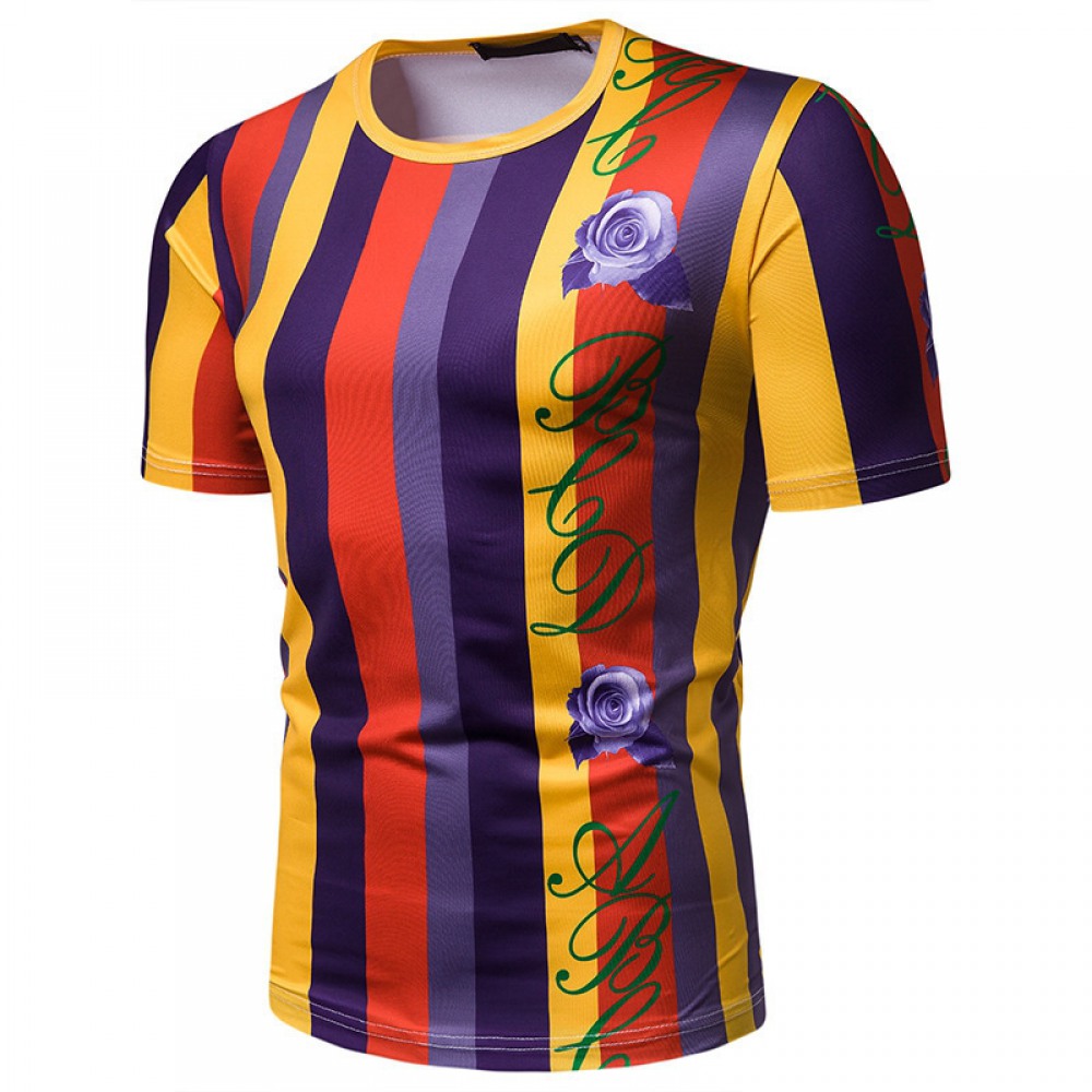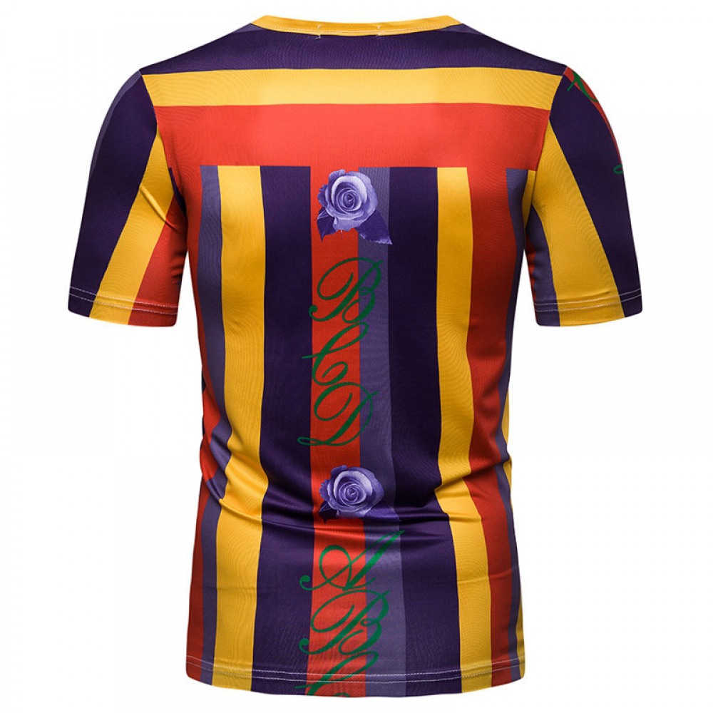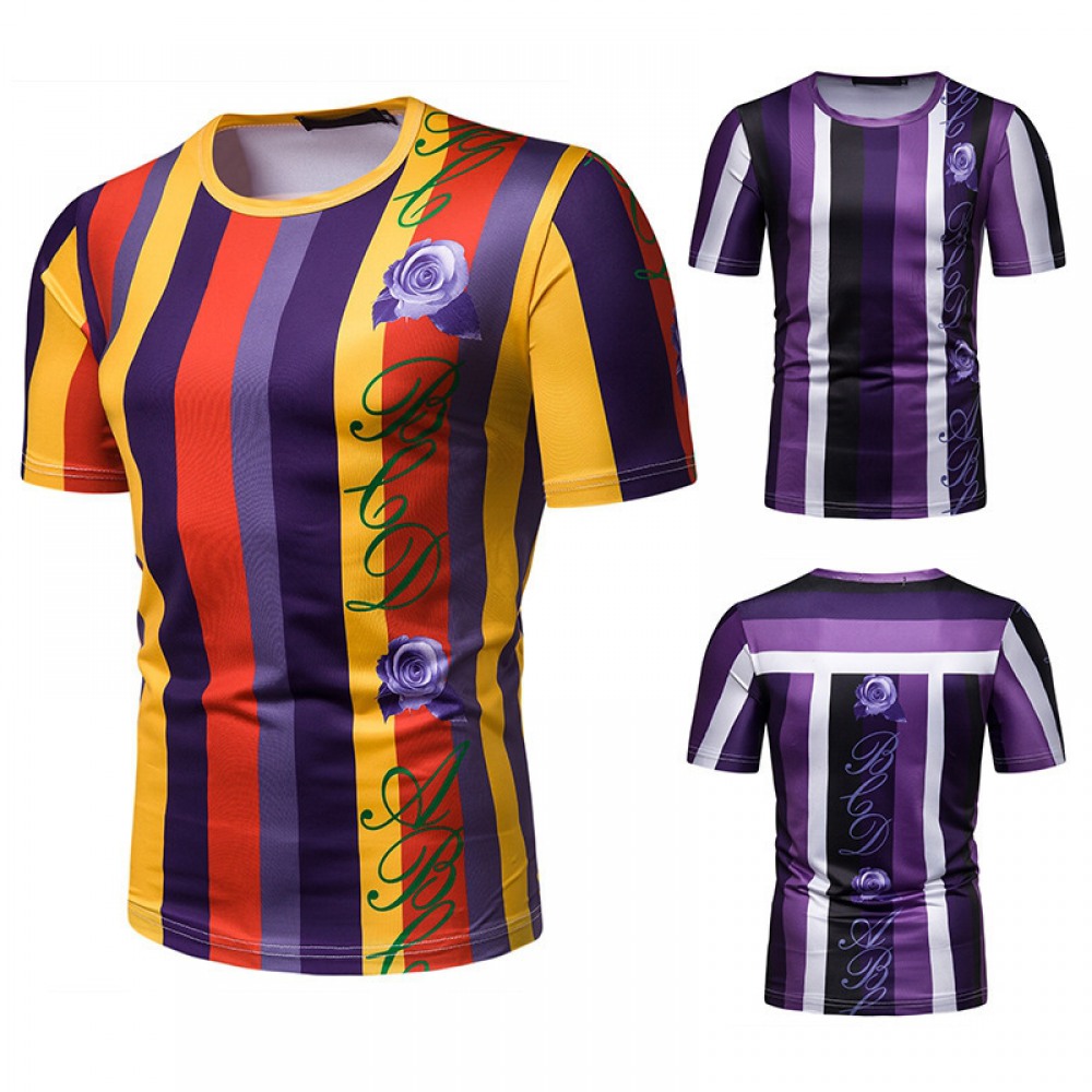 New Summer Men's Short-Sleeved T-Shirt Mens Contrast Striped Slim Casual T-Shirt